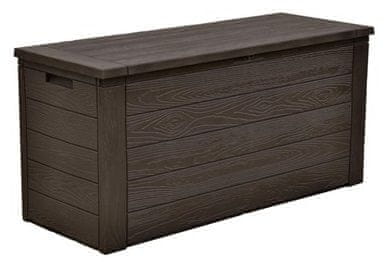 Plastična kutija za pohranu raznih predmeta poput jastuka ili vrtnog alata. Otpornost na loše vrijeme i na UV zračenje.