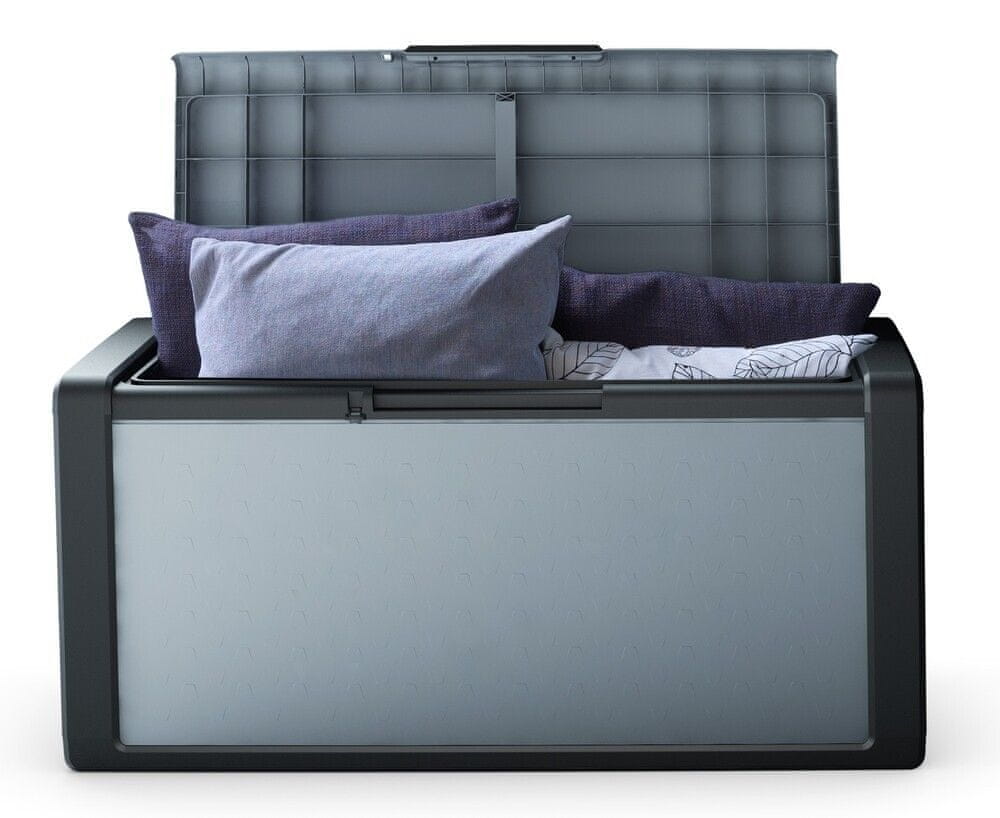 Moderna i iznimno praktična KETER Titan Chest Box kutija za pohranu kapaciteta 300 litara idealno je rješenje za pohranu vrtne opreme, tekstila, igračaka i ostalih predmeta koje trebate sigurno pohraniti i zaštititi. Zahvaljujući izdržljivoj plastici, kutija je čvrsta, stabilna i pouzdano otporna na vlagu, prljavštinu i nepovoljne vremenske uvjete. Moderan dizajn u sivo-crnoj boji uklapa se u svaki prostor – na terasu, balkon, vrt ili garažu. Kutija je vodootporna, tako da se ne morate brinuti o pohrani jastuka, deka ili drugog tekstila. Za veću sigurnost, može se zaključati i lokotom (nije uključen). Bočne ručke omogućuju jednostavno rukovanje, a jednostavna konstrukcija jamči brzu montažu. Za izradu seta može se nadopuniti praktičnim i dizajnerskim ormarićima iz iste TITAN serije. GLAVNE PREDNOSTI: robusna konstrukcija izrađena od visokokvalitetne polipropilenske plastike otporne na vremenske uvjete i UV zračenje praktične bočne ručke za jednostavno nošenje mogućnost zaključavanja lokotom (nije uključen) vodootpornost – idealno za pohranu tekstila i jastuka jednostavno čišćenje i mogućnost cjelogodišnje vanjske upotrebe pogodno za pohranu vrtnog pribora, igračaka i drugih predmeta jednostavna i brza montaža