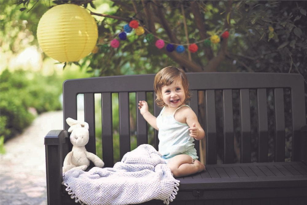 Elegantna klupa ili kutija za pohranu – Zašto ne dva u jednom? Kutija za pohranu + PATIO klupa je briljantno rješenje za one koji žele praktično pohraniti vrtne predmete. Zahvaljujući svojim mogućnostima, kutija za pohranu bit će idealna za deku, jastuke, a poslužit će i kao rekreacijski objekt. Površinska struktura imitira prirodno drvo, naglašavajući šarm i stil. Namještaj se odlikuje visokom otpornošću na nepovoljne vremenske uvjete i UV zračenje. Velika prednost je i jednostavno održavanje i jednostavna montaža.