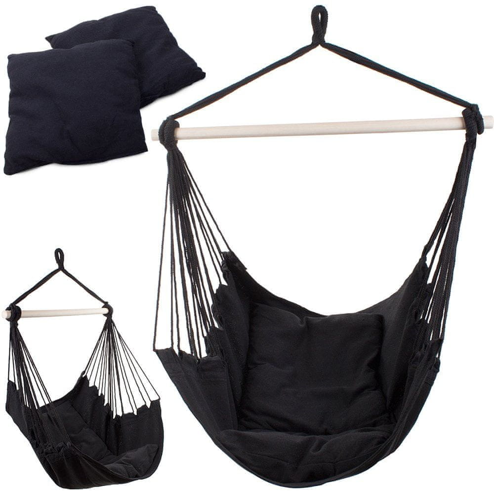 Verkgroup Brazilska viseća stolica mrežasta ljuljačka 130x100cm do 120kg + 2 jastuka crna