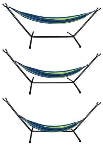 Sastav od izdržljivog čeličnog okvira lakiranog praškastom metodom, koji zahvaljujući svojoj nosivoj konstrukciji nudi posebno sigurno stajanje. Zahvaljujući udobnoj poliesterskoj tkanini, viseća mreža je vrlo udobna.Ležeća površina dimenzija 150×200 cm nudi dovoljno prostora za svakoga, čak i za dvoje. Do maksimalne nosivosti 150 kg.