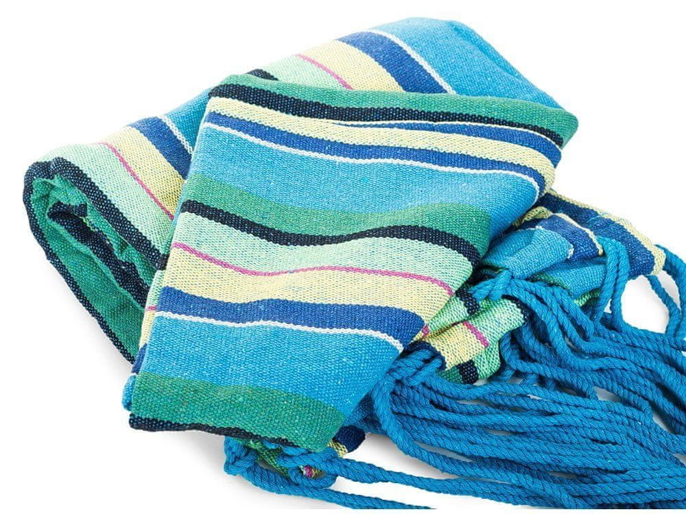 Prostrana i udobna: S dimenzijama od 200×80 cm, ova viseća mreža je dovoljno velika da se udobno smjesti i opusti. Njegova mekana i prozračna tkanina omogućuje vam udobno ležanje čak i za vrućih dana, dok shema boja Rainbow Blue unosi svježinu i modernost u svaku prostoriju.
