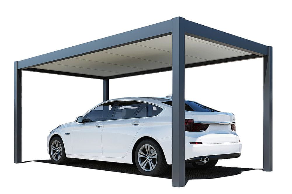 Premium aluminijski nadstrešnica Rojaplast PRESTIGE dimenzija 5,3×3 metra idealan je način natkrivanja parkirnog mjesta. Zbog parametara jednako dobro može poslužiti i kao pergola za sjedenje na otvorenom. Vrlo čvrsta i stabilna konstrukcija u antracit boji RAL 7016, s mat završnom obradom, uklapa se u svaki prostor, nema potrebe za bušenjem zida.
