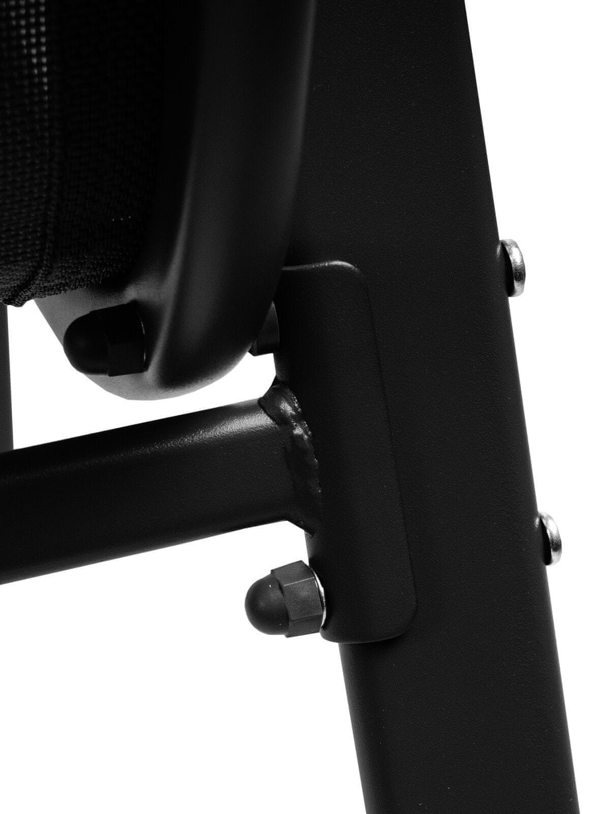 Stolica je udobna, ima stabilnu konstrukciju koja ne hrđa i čvrsti tekstilni presvlaka koji je vodootporan.