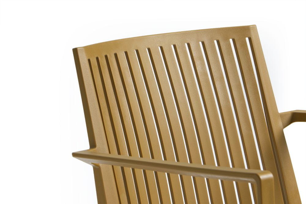 Jednostavna, elegantna i praktična fotelja s čvrstom konstrukcijom izrađenom od 100% recikliranog materijala. Ovaj materijal otporan je na UV zračenje. Fotelja se može koristiti i u zatvorenom i na otvorenom. Konstrukcija fotelje nije samo lagana, već i vrlo čvrsta zahvaljujući upotrebi kompozitnog materijala ojačanog staklenim vlaknima. Fotelja također uključuje udobne naslone za ruke. Fotelja ima nosivost do 150 kg i stoga je prikladna i za kućanstva i za komercijalne svrhe, npr. za restorane ili konferencijske dvorane. Fotelja se također može slagati, tako da možete pohraniti mnogo njih u malom prostoru.