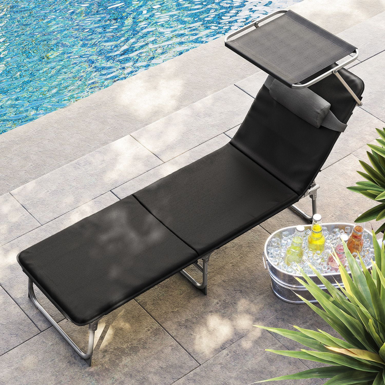Songmics Ležaljka za sunčanje 53x193x295 cm Crna