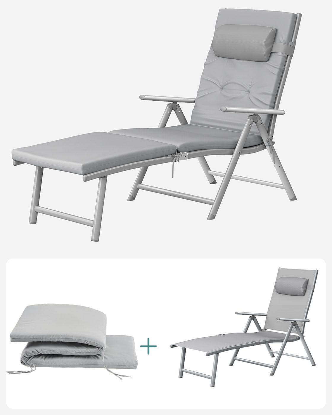 Ovaj sklopivi ležaljka dizajniran je za pružanje izuzetne udobnosti i svestranosti za opuštanje na otvorenom bilo u vašem vrtu na terasi ili na plaži. Sadrži debeli madrac i podesivi naslon za leđa što osigurava ugodno ležanje tijekom duljih razdoblja. Prozračna sintetička tkanina i uklonjivi naslon za glavu dodatno povećavaju praktičnost i jednostavnost korištenja.