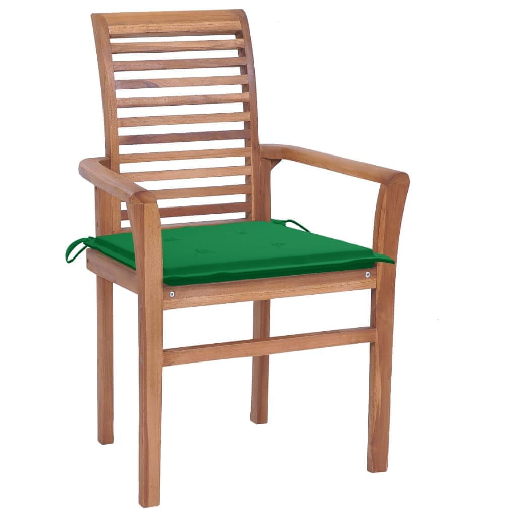 Vidaxl Blagovaonske stolice sa zelenim jastucima 4 kom od tikovine