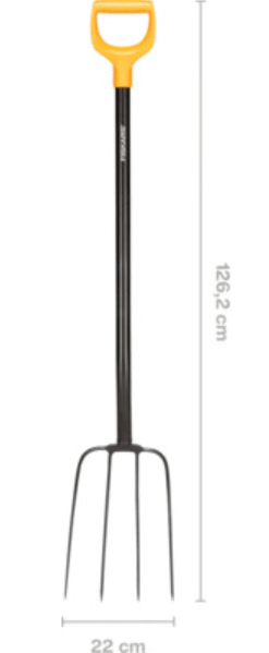 Idealno za rukovanje materijalima kao što su trava, sijeno, korov, lišće, kompost i drugi vrtni otpad Kovani vrhovi povećavaju snagu oštrice pri radu na teškom tlu Drška u obliku slova D idealna je za sve veličine ruku, sa ili bez rukavica Materijal: plastika / čelik Težina: 1,6 kg Dimenzije (V x D x Š): 126,2 × 10,1 × 22 cm