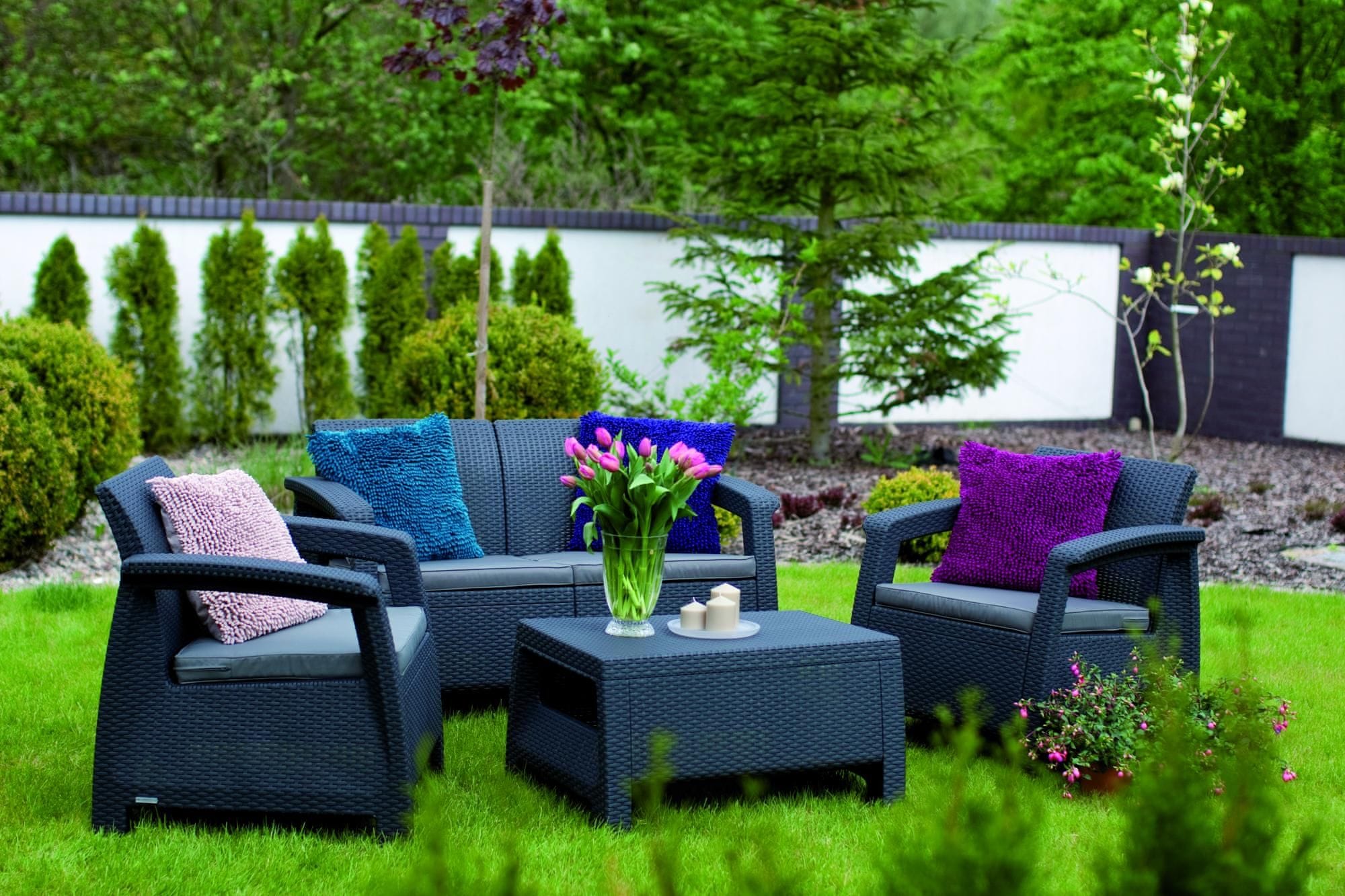 Allibert CorfuGarnitura uključuje dvije fotelje, kauč i stol od umjetnog ratana, pri čemu bije ne blijede. Jednostavno namještanje i održavanje. Materijal je otporan na različite vremenske uvijete, vodu i UV zrake. Garnituru nadopunjuju udobni jastuci. Preporuka:
