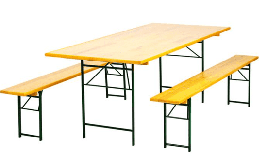 Set od 3 komada uključuje dvije klupe i veliki pravokutni stol. Izrađen je od kombinacije bora, smreke i jele. Vrtni namještaj je praktičan, prostran i otporan na vremenske uvjete.