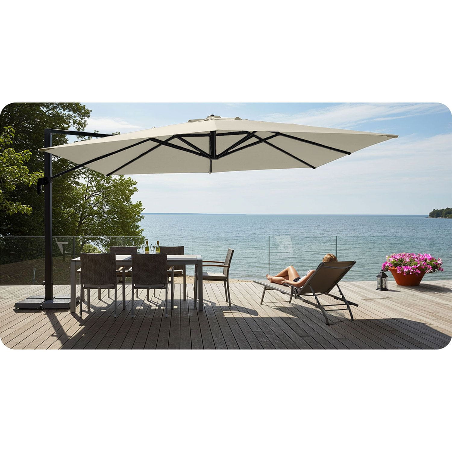 Veliki vrtni suncobran od 360º Plonos 420 cm Plonos: 488301 Boja nadstrešnice: pijesak ✅Za one koji vole provoditi vrijeme na otvorenom – na terasi, u vrtu ili na plaži.