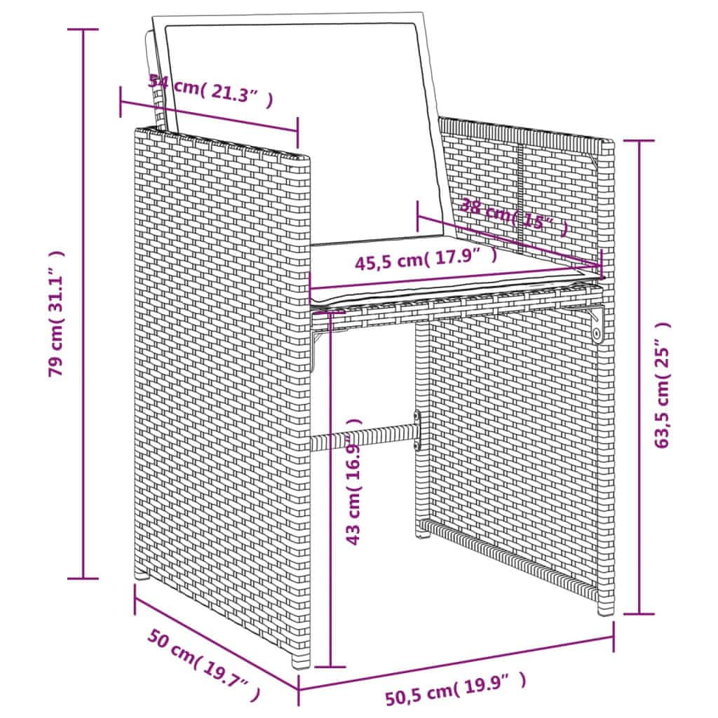 Vidaxl 13-dijelni vrtni blagovaonski set s jastucima poliratan sivi