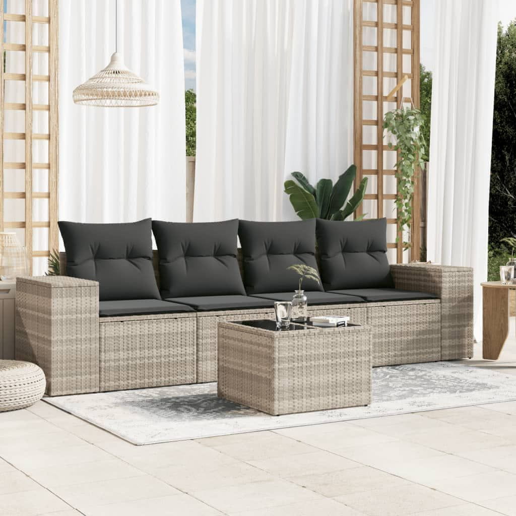 Vidaxl 5-dijelna vrtna garnitura s jastucima svijetlosiva poliratan
