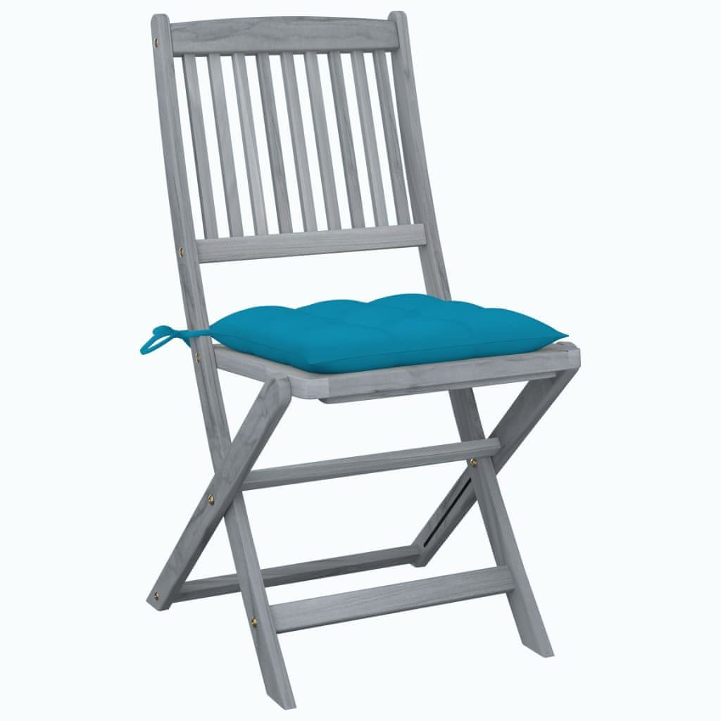 Ovaj suvremeni set drvenih blagovaonskih stolica s jastucima dodaje dašak prirodnog stila vašem vrtu, terasi ili dvorištu. Set sklopivih stolica izvrstan je izbor za objedovanje.