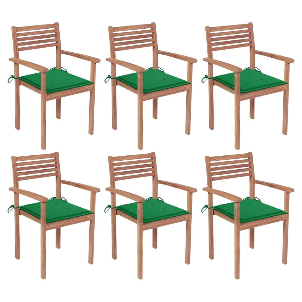Vidaxl Složive vrtne stolice s jastucima 6 kom od masivne tikovine
