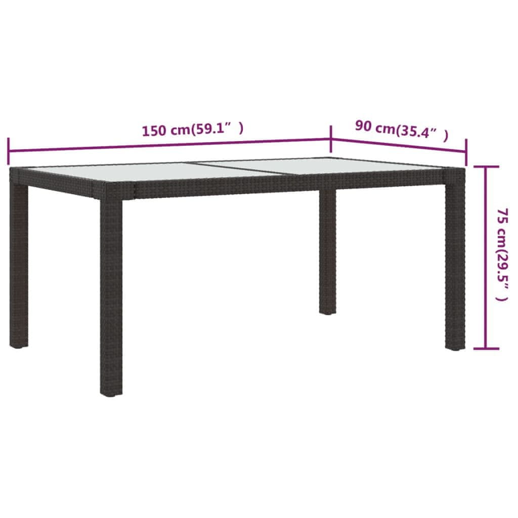 Vidaxl Vrtni stol 150x90x75 cm od kaljenog stakla i poliratana smeđi