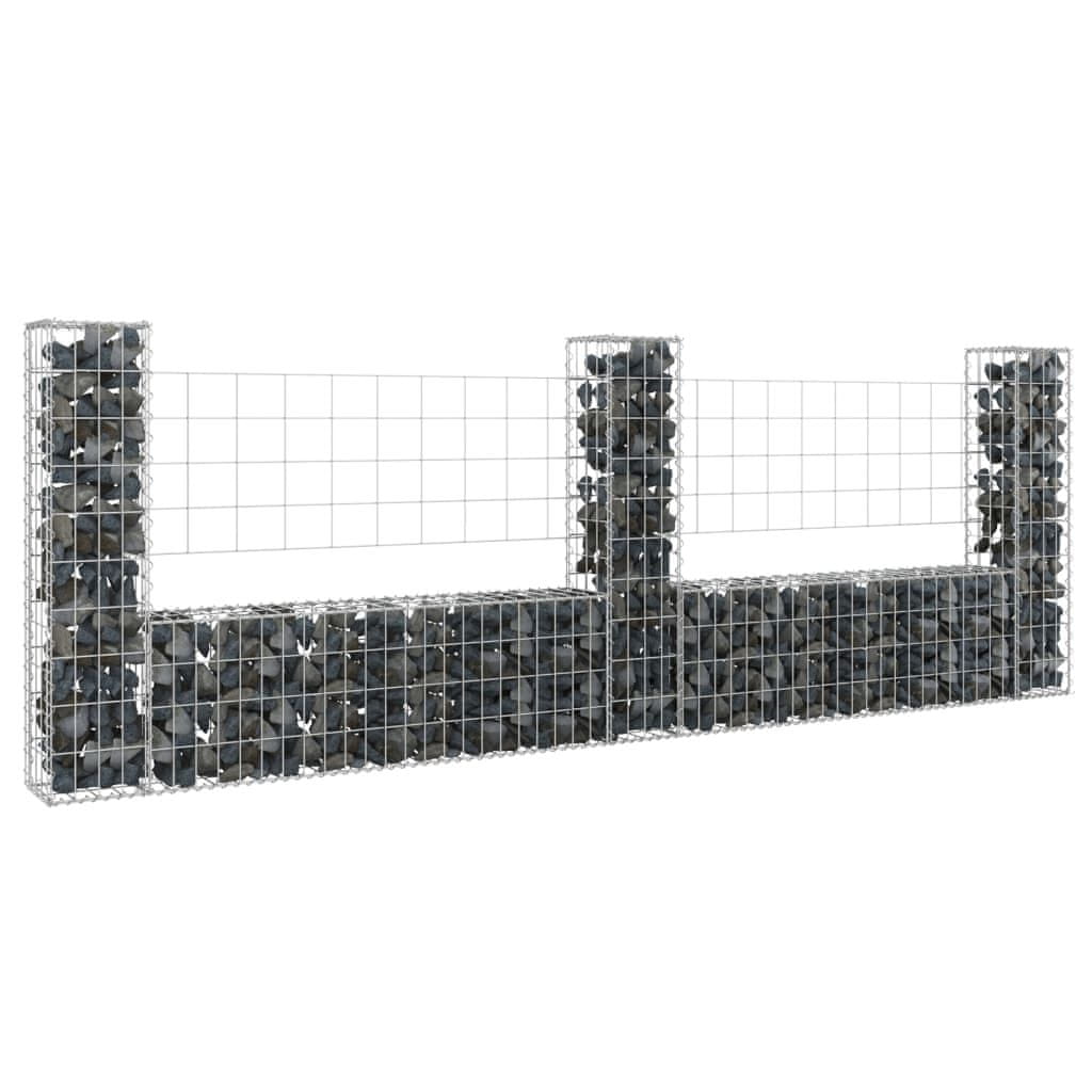 Vidaxl Gabionska košara U-oblika s 3 stupa 260 x 20 x 100 cm željezna