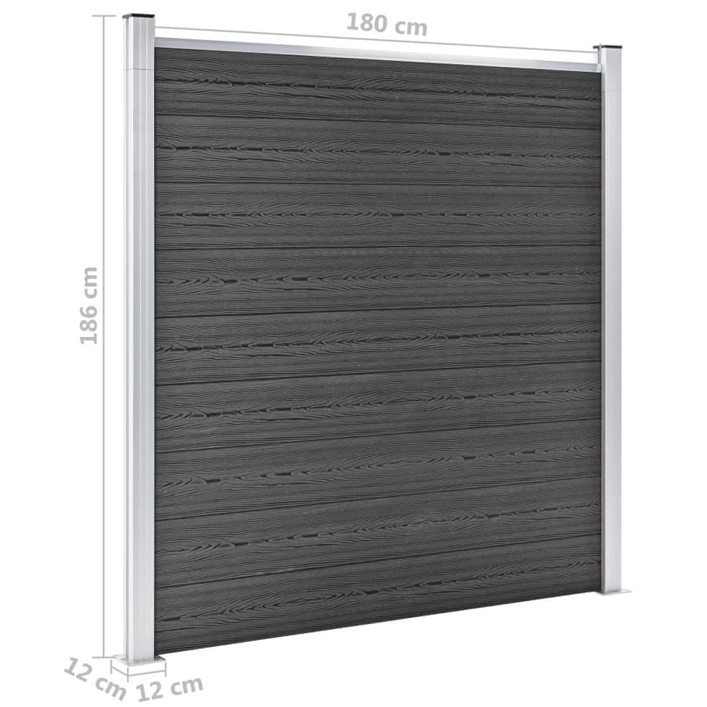 Vidaxl Set panela za ogradu WPC 1737 x 186 cm crni