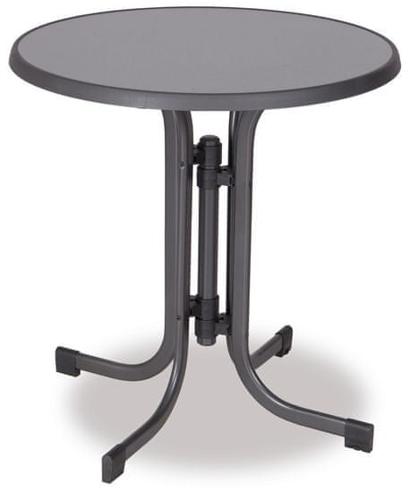 Okrugli sklopivi stol s čvrstom metalnom konstrukcijom i otpornom gornjom pločom. Prikladno za korištenje u unutarnjim i vanjskim prostorima. Otporan je na UV zrake, vremenske uvjete i materijalnu štetu. Cijeli opis