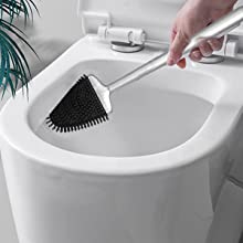 Četka za čišćenje WC školjke se ne troši i ne mijenja oblik, što osigurava savršeno čišćenje. Silikonske četke imaju fleksibilnu glavu koja doseže sva područja, začepljenja i prljavštinu bez kapanja. Neće ogrebati površinu WC školjke.