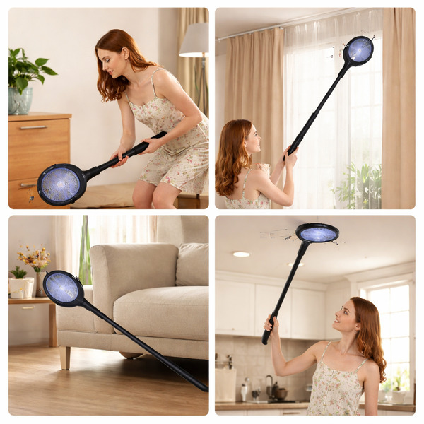 S produživom dužinom štapa od 34 cm do 62 cm, ovaj vam udarač omogućuje doseg visokih kutova, prozora ili vanjskih prostora bez napora, dok kompaktna veličina od 22,8 × 44,8 cm osigurava jednostavno skladištenje.
