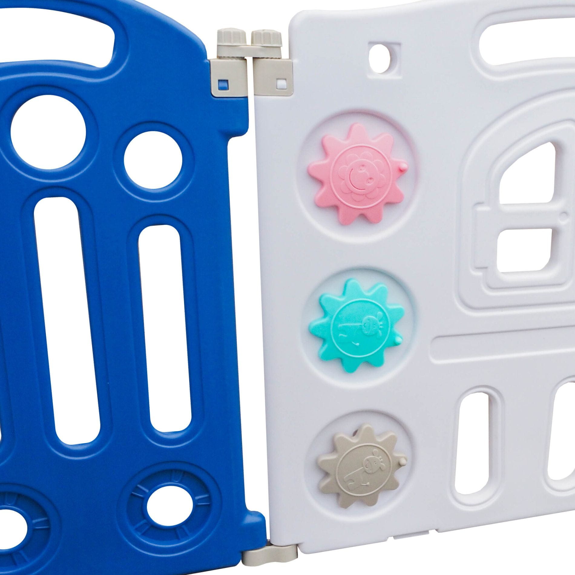 Ova prostrana ograda nudi dovoljno prostora za igru, odmor i razvoj motoričkih vještina vašeg djeteta. S dimenzijama 186×192×64 cm i atraktivnim dizajnom postat će omiljeno mjesto za vašu djecu, bilo u interijeru ili u vrtu.