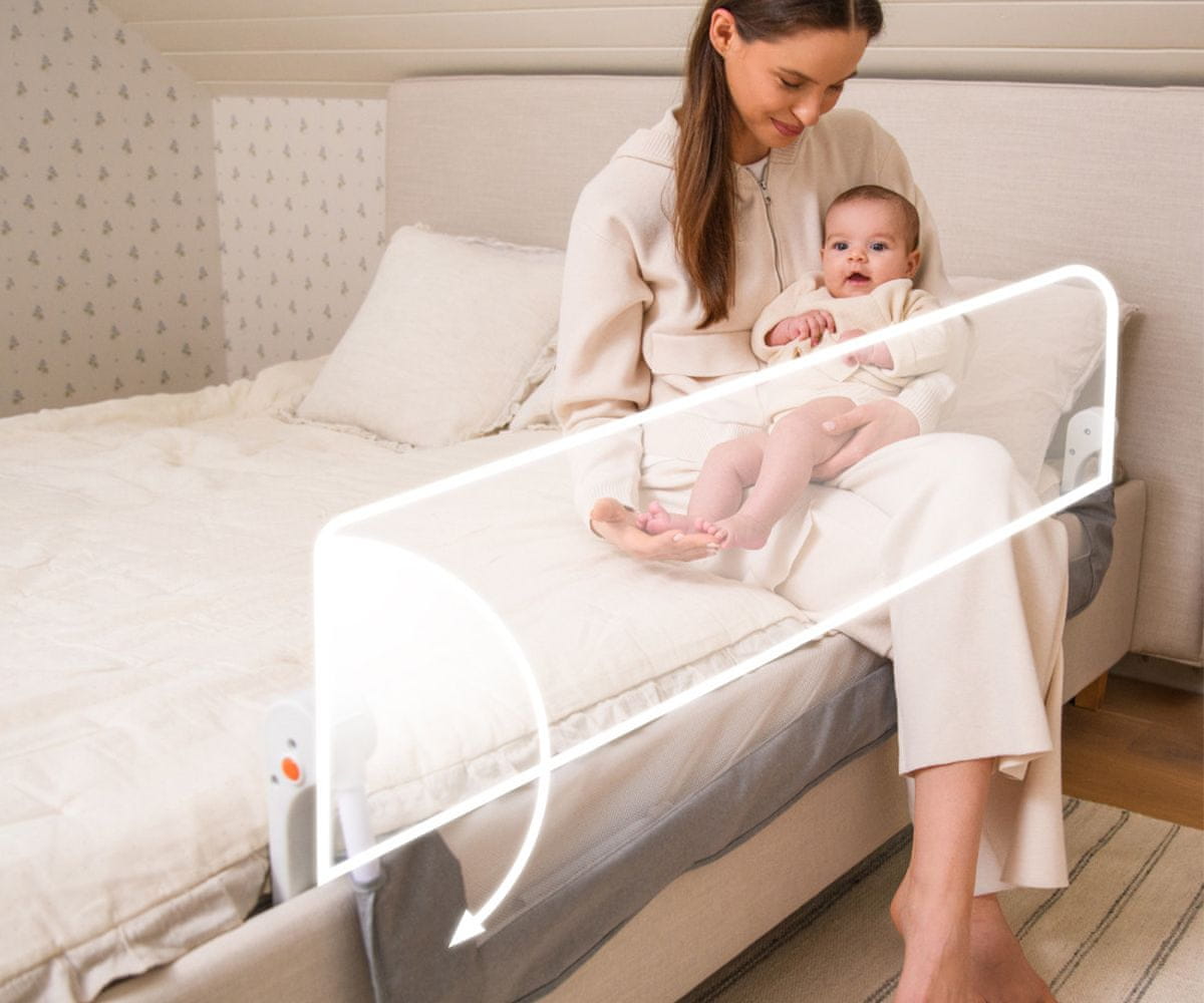 Podešavanje otvaranja od 180° za udobno ustajanje roditelja iz kreveta i jednostavno spuštanje kada se zaštitna ograda ne koristi, bez potrebe za rastavljanjem.