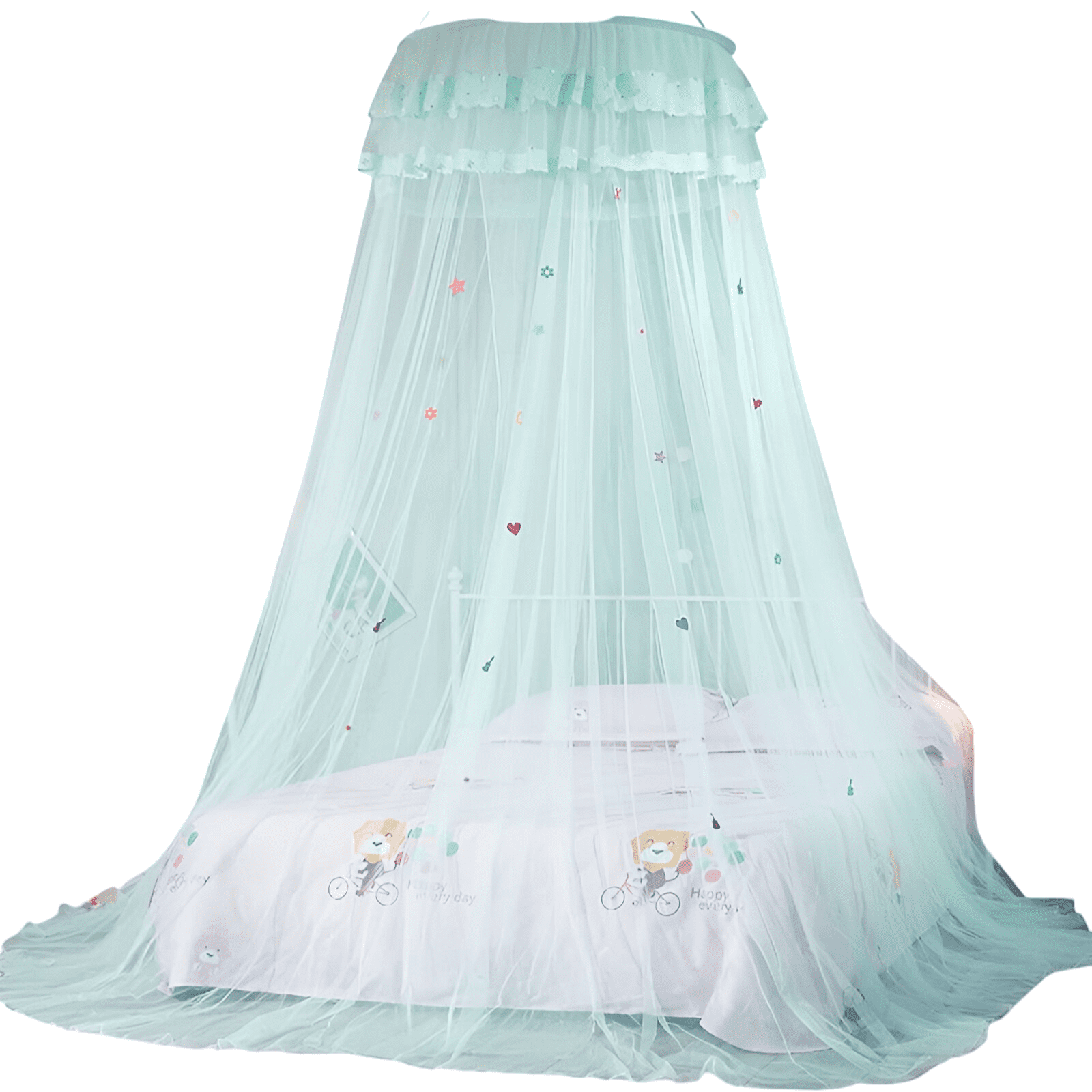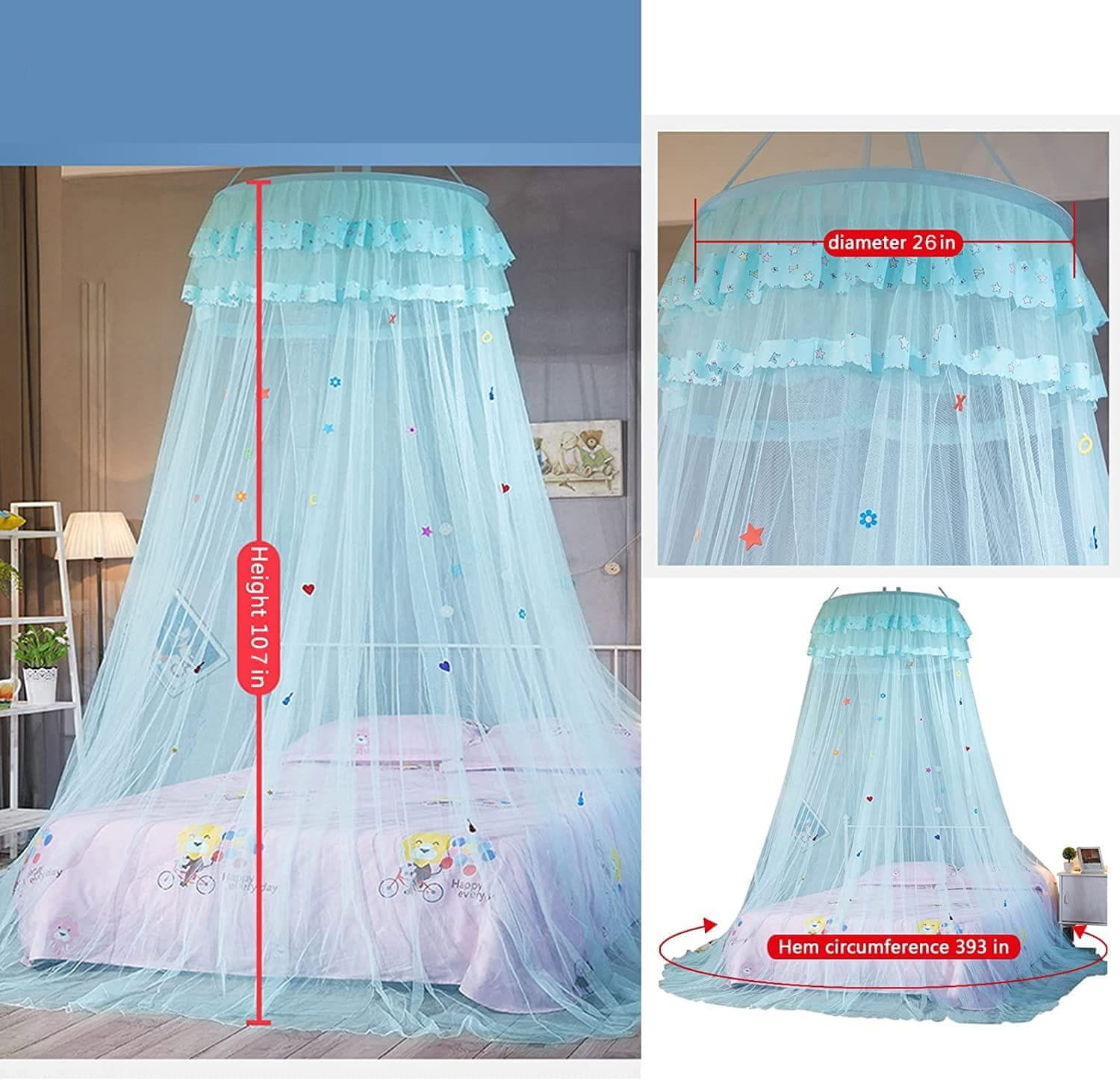 Ova zaštitna mreža protiv komaraca u obliku baldahina predstavlja praktično i dekorativno rješenje za svaku dječju spavaću sobu. Izrađena je od izuzetno lagane i prozračne poliesterske mreže koja učinkovito štiti od komaraca i ostalih insekata, čime se djetetu osigurava miran i neometan san tijekom cijele noći. Specifičan okrugli oblik s diskretnim i suptilnim volanima daje unutrašnjosti sobe bajkovit karakter, dok plava boja unosi ugodan i umirujući naglasak u prostor. Montaža proizvoda je jednostavna i brza jer se mreža postavlja vješanjem na strop pomoću kuke, bez potrebe za složenim alatima. Zahvaljujući svom kompaktnom i prilagodljivom dizajnu, ovaj je baldahin prikladan za standardne pojedinačne krevete kao i za manje dječje krevetiće, čineći ga svestranim dodatkom za dom.