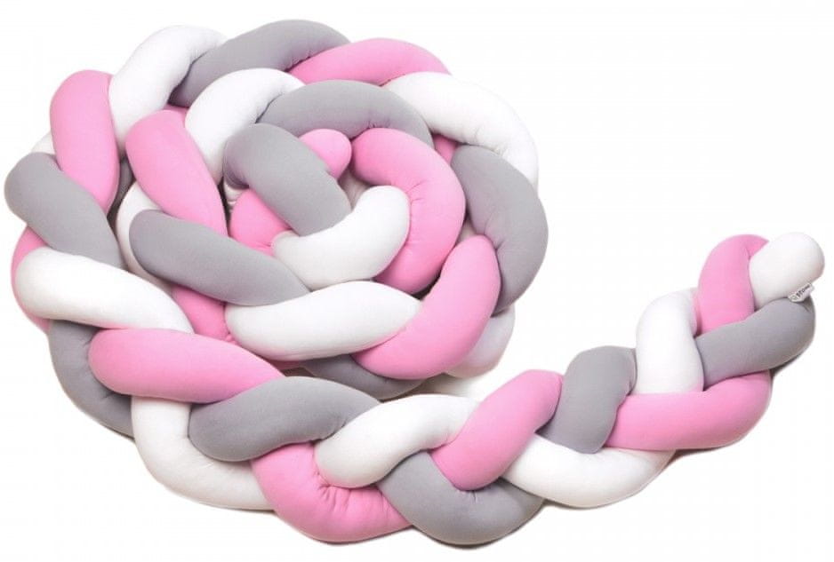 T-tomi pletena pletenica za dječji krevetić, 360 cm, bijela + siva + roza