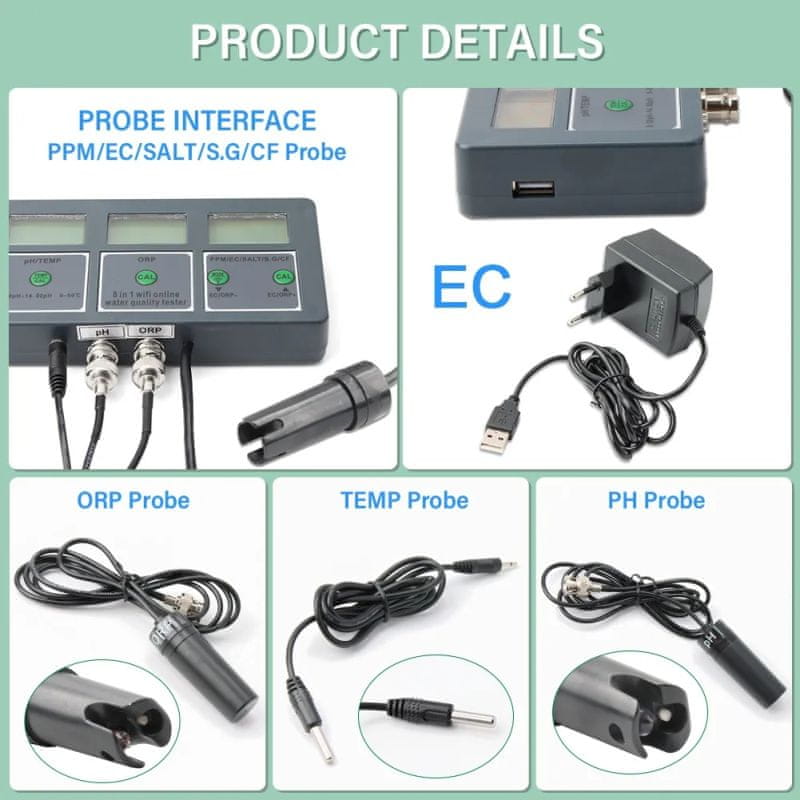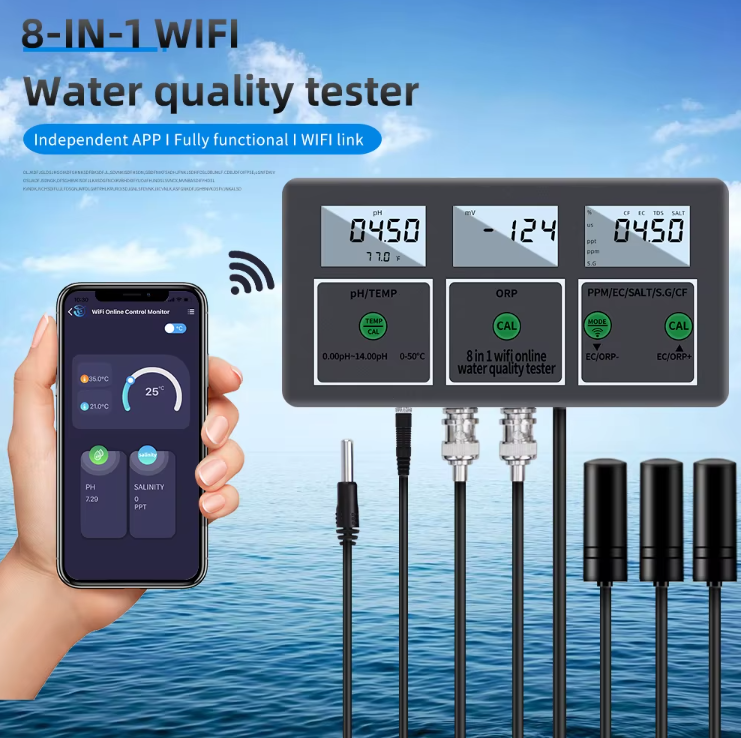 - Pametni Tuya WiFi 8u1 digitalni mjerač pH i minerala PH-W218EU