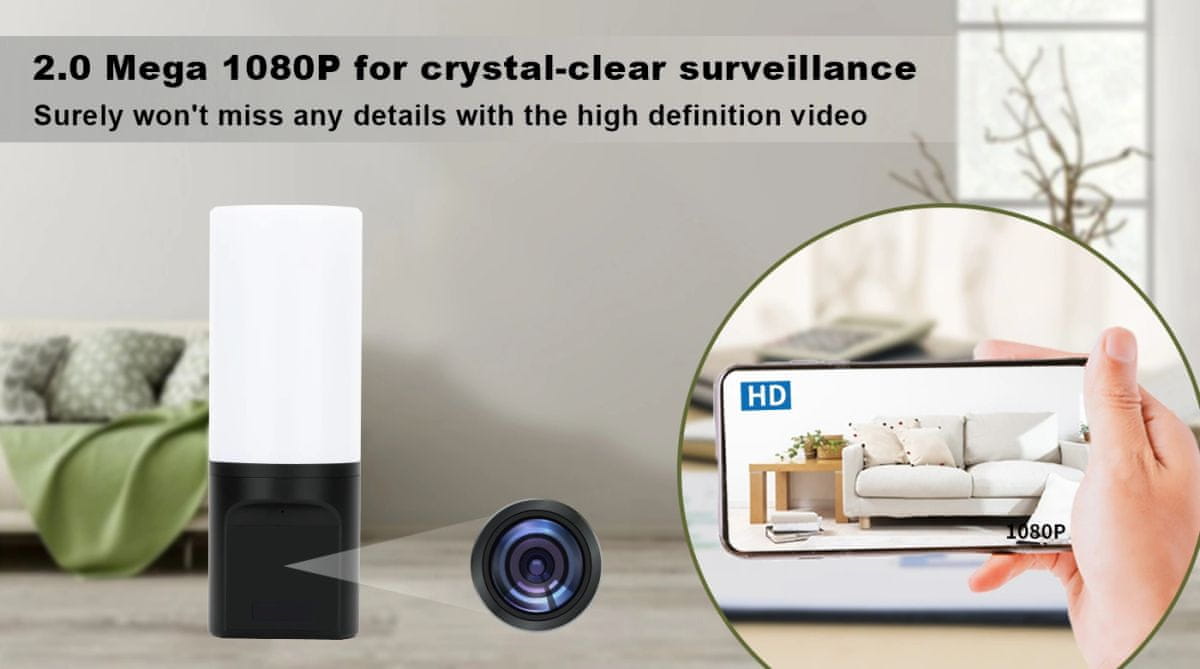 Ova kamera je idealna za svakodnevnu upotrebu, posebno u manjim prostorima koje želimo nadzirati u cijeloj širini. Kombinacija lampe i kamere je idealna za nadzor ulaza ili hodnika. Kada detektira pokret, svjetlo lampe se pali na jednu minutu, a zatim se gasi. Osim toga, možete daljinski pratiti trenutni live prijenos koji kamera snima ili već snimljene zapise pohranjene na memorijskoj kartici u uređaju putem mobilne aplikacije.