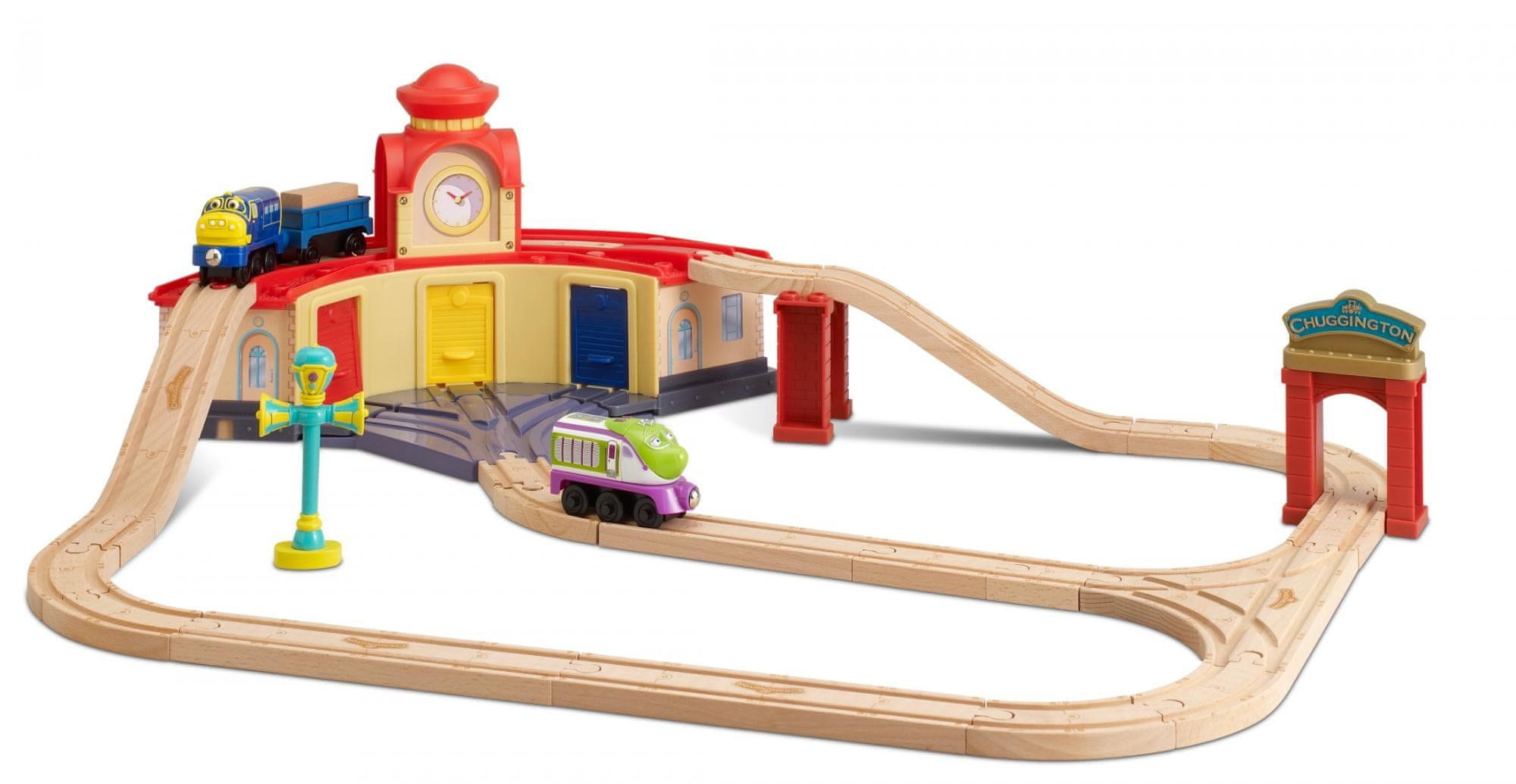 Zabavni željeznički dio sa svjetlosnim efektima. Uključuje željezničku stanicu, lokomotivu, kamion, vagon vlaka i tračnice. Za djecu od 2 godine i više.