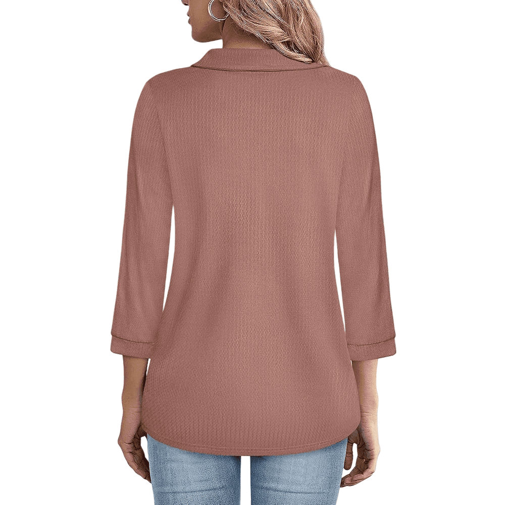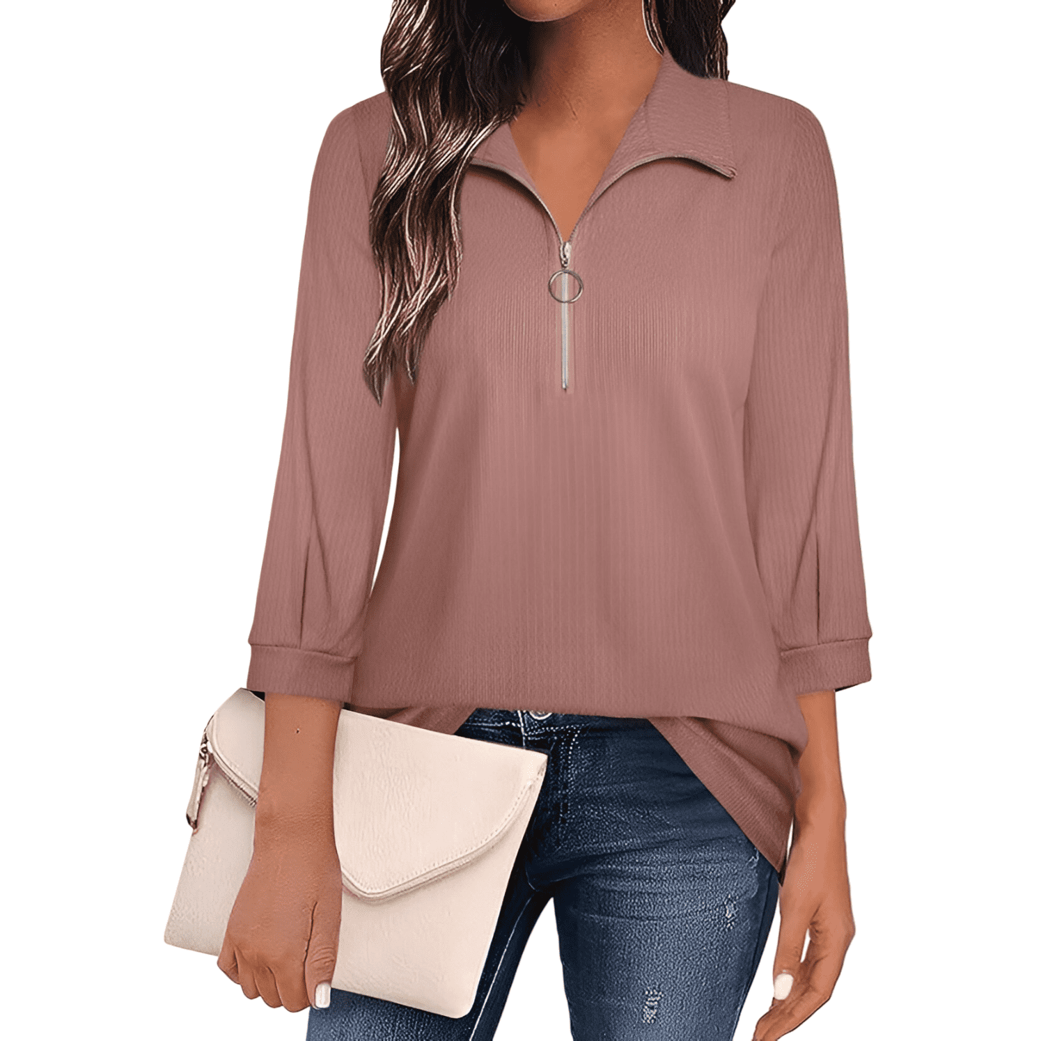 Nikcorp Elegantna ženska bluza pulover poludolčevita s patentnim zatvaračem, 3/4 rukavi, poslovna i udobna, smeđa, veličina L