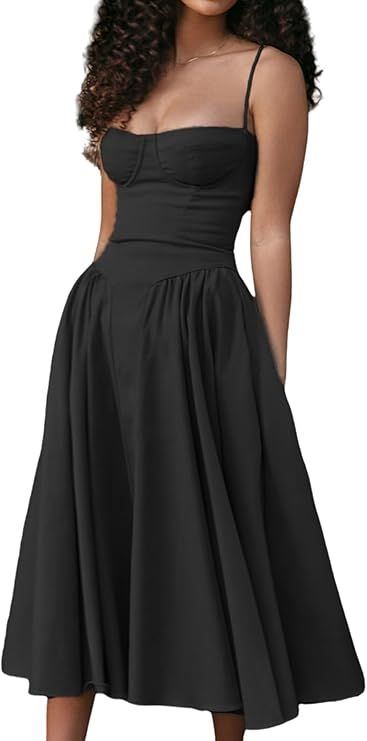 Nikcorp Duga ženska ljetna haljina crna, A-kroj na tanke naramenice, s džepovima, lagana i prozračna, za plažu i koktel zabave, veličina S