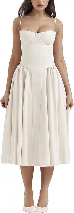 Nikcorp Duga ženska ljetna haljina na naramenice s džepovima, lagani A-kroj za plažu i svečane prigode, prozračna, bijela boja, veličina M