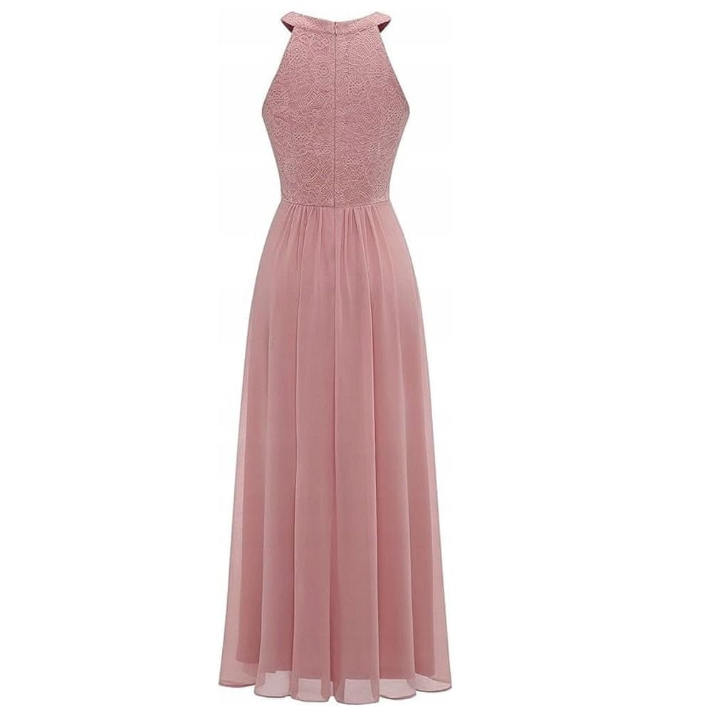 Nikcorp Svečana duga haljina od čipke i šifona, elegantna i prozračna, bez rukava s vezanjem oko vrata, roza, veličina XL