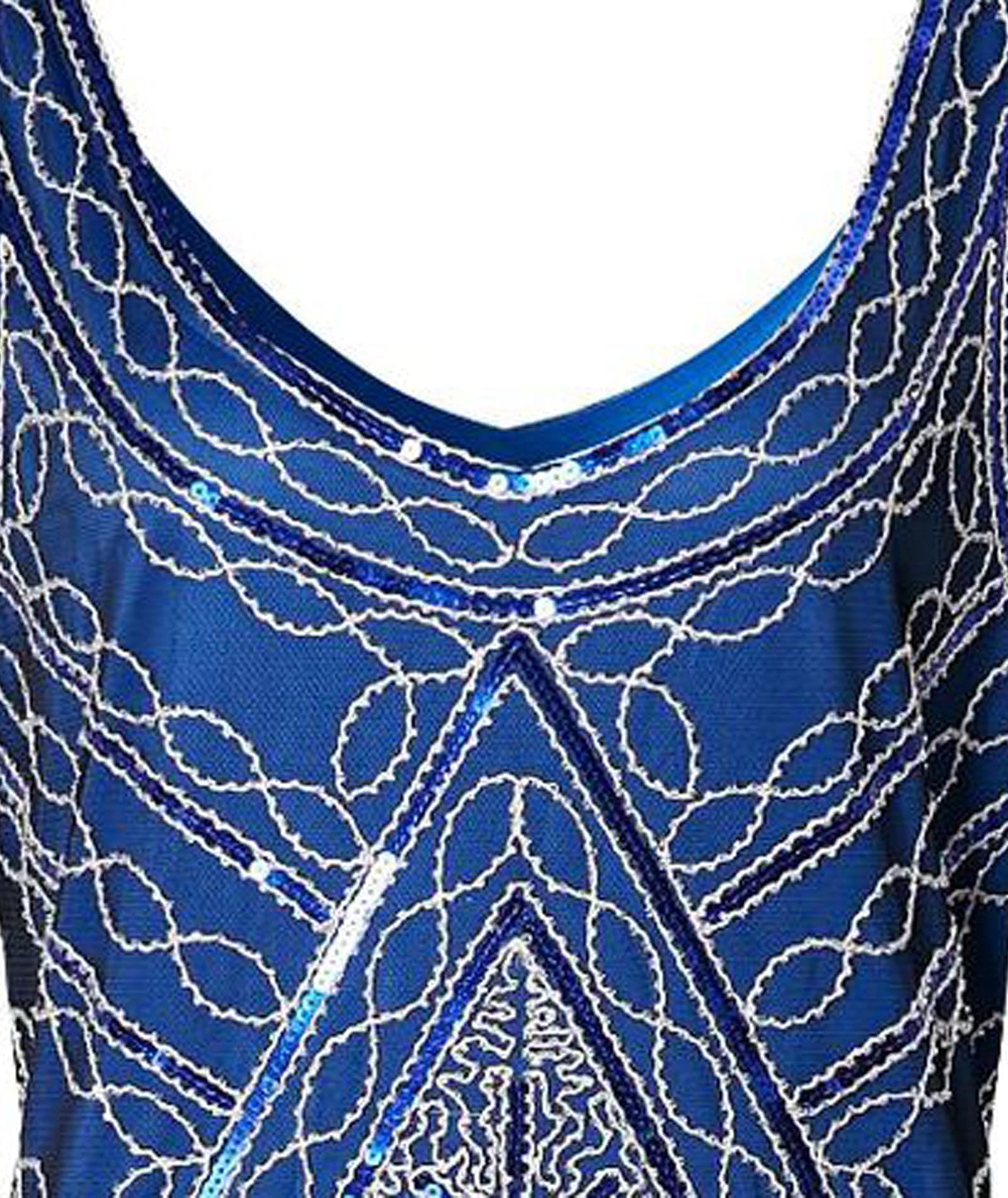 Nikcorp Svečana haljina sa šljokicama i resama, stil 20-ih Veliki Gatsby, za maturalnu večer, koktel party, bez rukava, plava XL