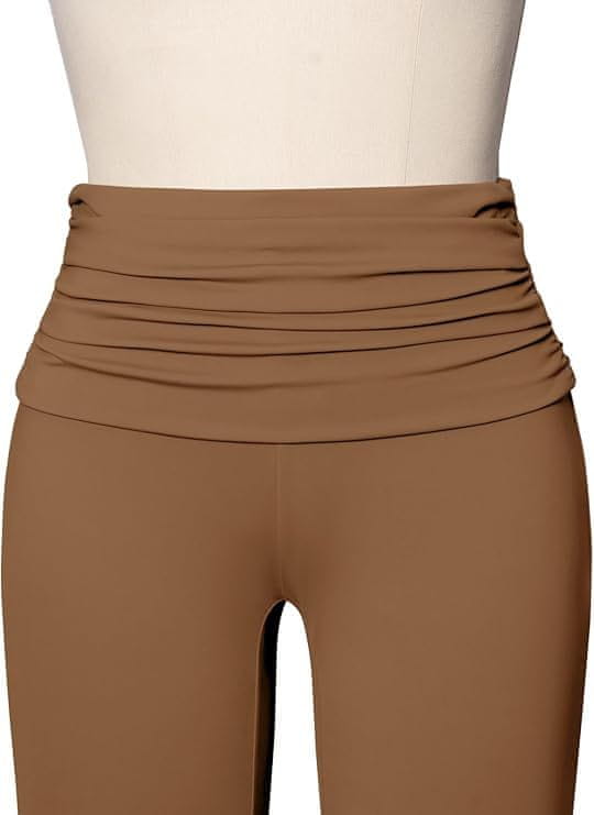 Nikcorp Ženske hlače širokih nogavica s visokim strukom, elegantne tajice za jogu i slobodno vrijeme, smeđe boje, veličina XL