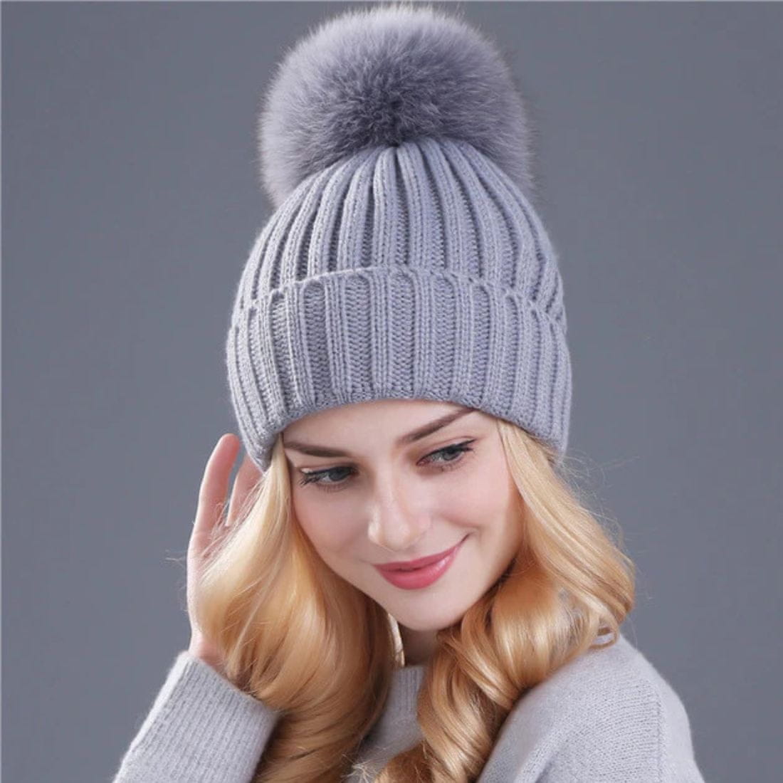 VIVVA® Pletena ženska kapa s cofkom, topla zimska kapa za planine i grad, moderna kapa za zimu | GLACIA, siva
