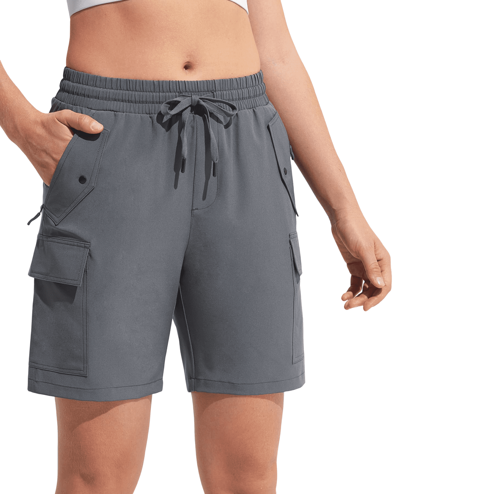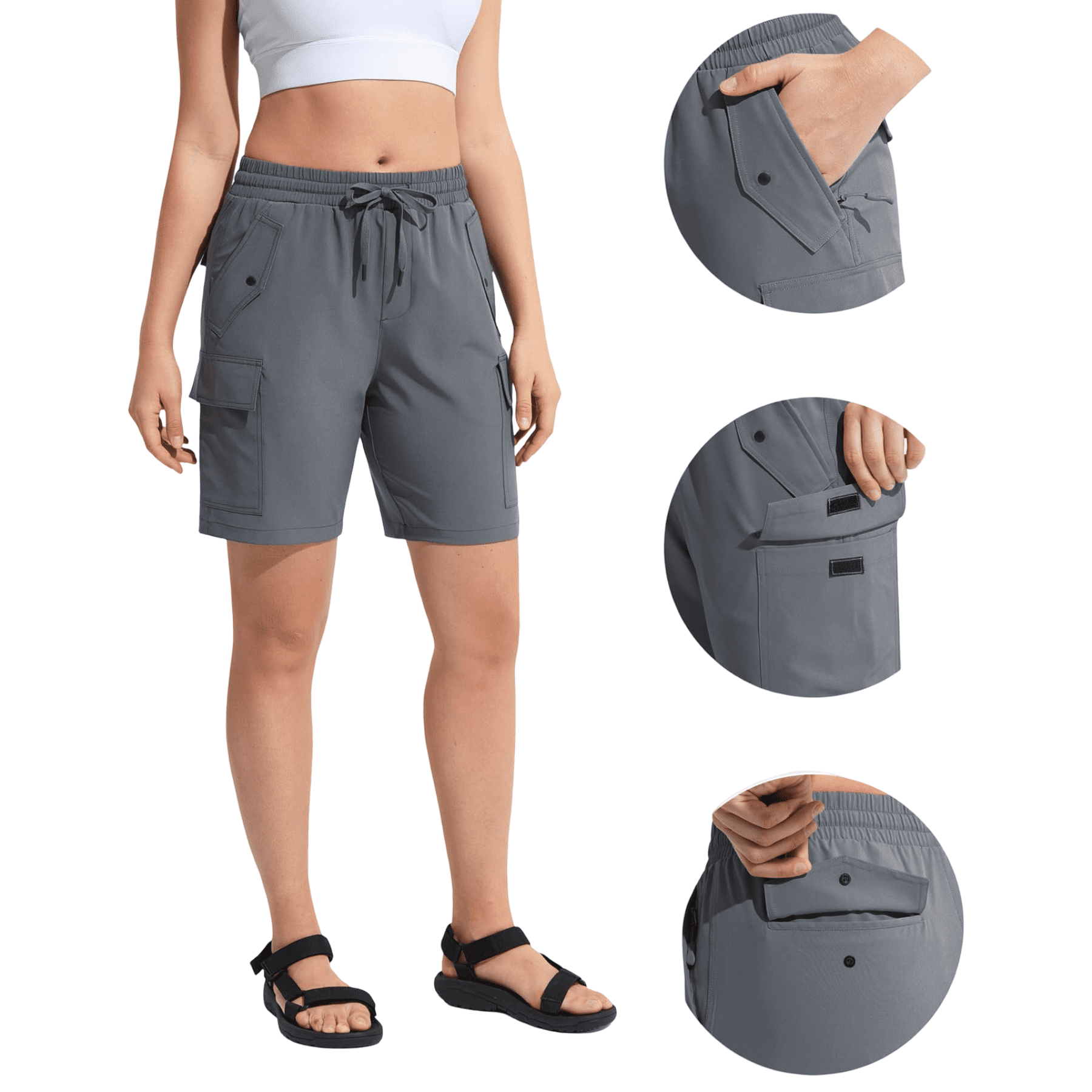 Nikcorp Ženske cargo kratke hlače sportske za trekking i trening, lagane i brzosušeće, sa šest džepova, sive boje, veličina M