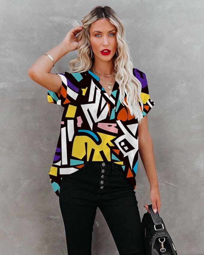 Ženska ljetna bluza kratkih rukava predstavlja spoj funkcionalnosti i suvremenog dizajna, prilagođen potrebama moderne žene tijekom toplijeg dijela godine. Izrađena od lagane i visokokvalitetne tkanine, ova bluza omogućuje optimalnu prozračnost i udobnost, što je čini prikladnom za cjelodnevno nošenje u različitim okruženjima. Njezin labavi kroj pažljivo je osmišljen kako bi pružio slobodu kretanja, dok suptilni detalji poput V-izreza i nabora na prednjoj strani pridonose profinjenom izgledu. Bez obzira na to nosi li se u poslovnom okruženju ili tijekom slobodnog vremena, ova bluza osigurava uredan i skladan izgled. Lagani materijal olakšava održavanje i pruža osjećaj svježine, što je ključno za ljetne mjesece i visoke temperature.