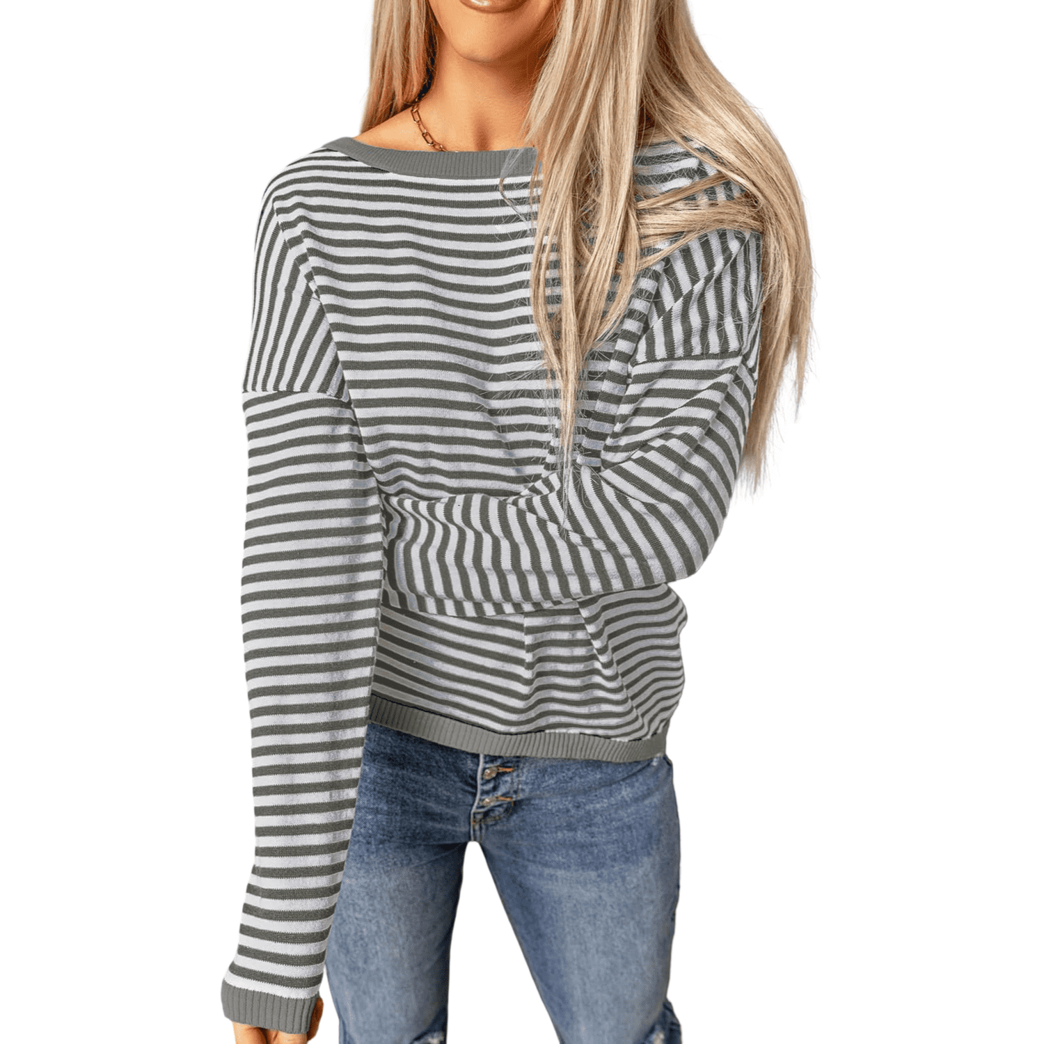 Ženska majica dugih rukava na pruge – Bijelo-siva