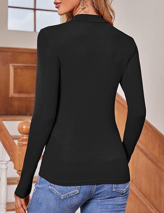 Ženska uska majica dugih rukava Elegantna dolčevita Crna Veličina XL