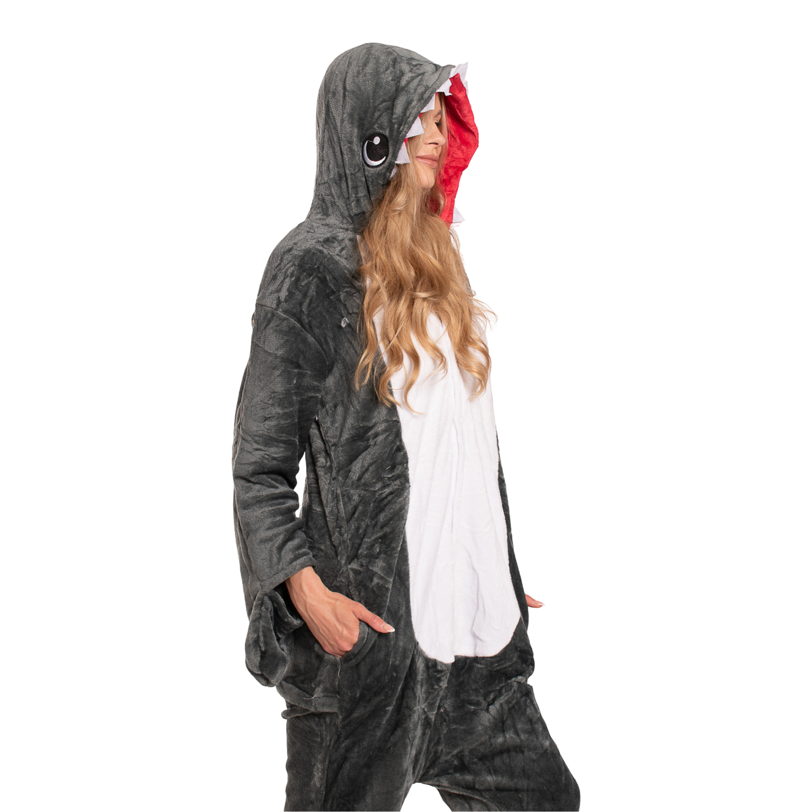 Nikcorp Jednodijelna pidžama kigurumi sivi morski pas, kombinezon za odrasle, kostim za spavanje, veličina M (155-165 cm)