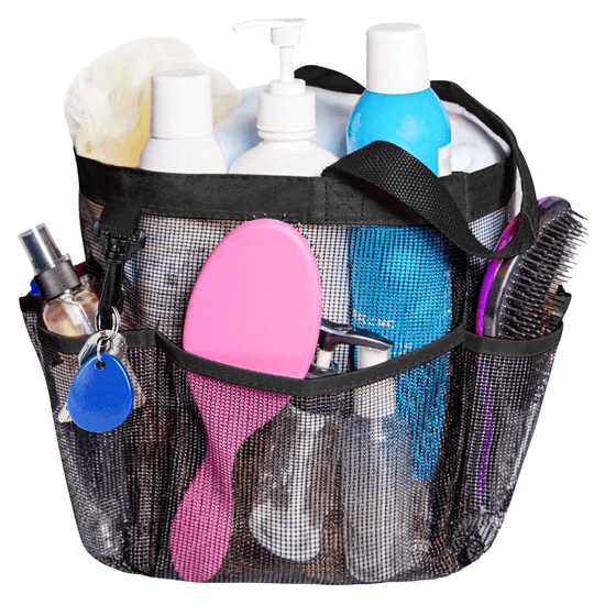 Nikcorp Kozmetička torba mrežasti organizator za kupaonicu s 8 džepova, brzosušeći i prijenosni, za tuš i putovanja, crni 40x28 cm