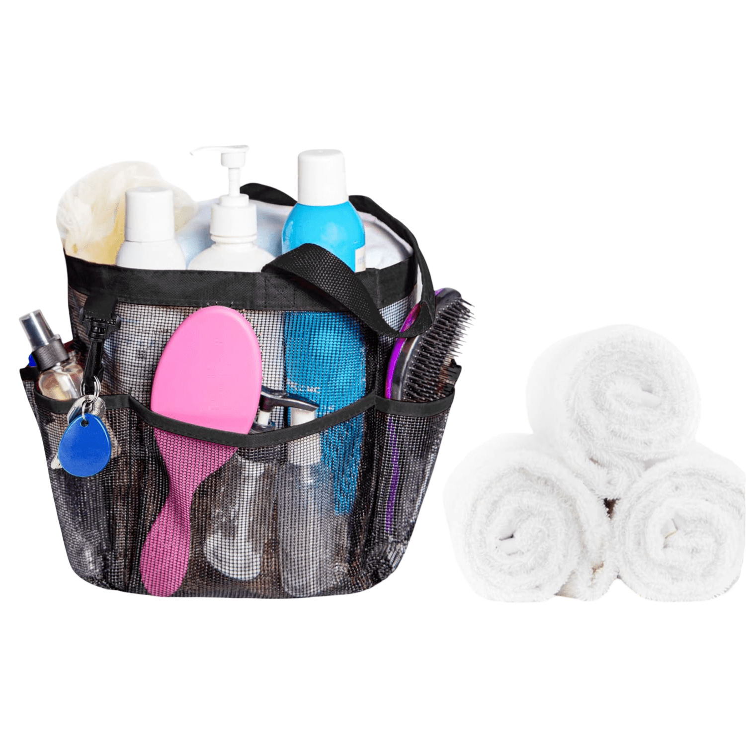 Mrežasti organizator s 8 džepova je funkcionalan dodatak za svaku kupaonicu. Pomaže u održavanju reda i osigurava da sva potrebna kozmetika bude pri ruci. Zbog svojih kompaktnih dimenzija i lagane konstrukcije, koristan je kako kod kuće, tako i na putovanju.