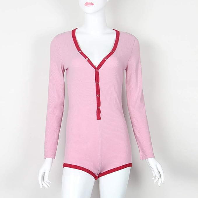 Nikcorp Ženski bodi dugih rukava s V-izrezom, rebrasti pamučni izgled, rastezljivi materijal, ružičasto-crvena boja, veličina S