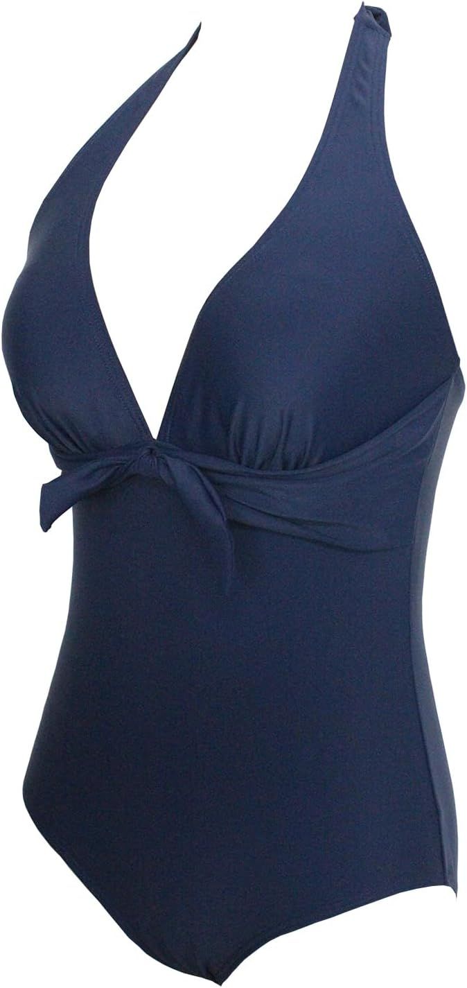 Nikcorp Jednodijelni ženski kupaći kostim s izrezom, retro stil 50-ih, halter izrez za oblikovanje figure, tamnoplavi, S