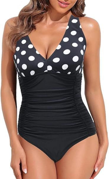 Nikcorp Ženski kupaći kostim na točkice visokog struka, udoban i brzo sušeći materijal, podstavljen bez žice, L veličina